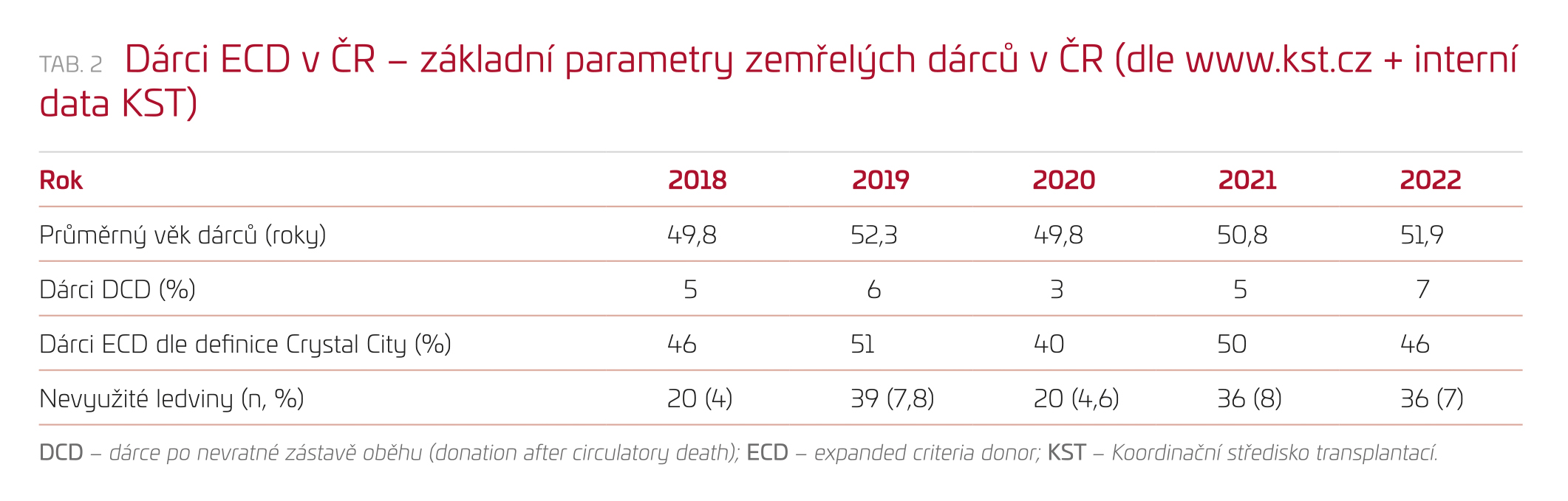 V České republice představují ledviny od dárců ECD téměř polovinu všech nabízených orgánů (tab. 2). Navzdory tomu je absolutní počet nevyužitých nabídek minimální v porovnání například s realitou ve Spojených státech.